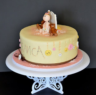 Другата торта, която искам да представя, е свързана с костенурчето Франклин. Това е вече третият път, когато се "срещам" с него - резултатите от предишните можете да видите тук и тук. Когато децата ми бяха малки, те не проявиха интерес към тази тема, може би защото и аз самата не я харесвам особено много и никога не съм им купувала книжки от дългата поредица с истории за Франклин и приятелите му. Независимо от това обаче се оказа, че по някакъв необясним и за мен начин и трите торти, които направих за него, попаднаха сред по-любимите ми творения. Явно все пак темата крие в себе си някакъв уют и топлина, който ми влияе по време на работата... Ето крайният резултат от сегашната ми работа: